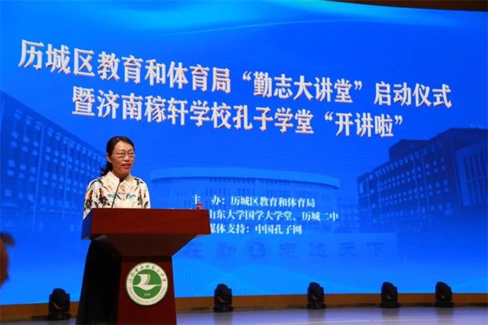 9月16日下午2点,历城区教育和体育局“勤志大讲堂”启动仪式暨济南稼轩学校孔子学堂开讲活动在历城二中闻韶大礼堂举行。尼山世界儒学中心副主任、中国孔子研究院院长杨朝明,济南市历城区教育和体育局党组书记、局长李新生,山东大学国学大学堂主任辛成志,中国孔子网运营部主任郭明明出席此次活动。历城区教体局总督学贾延芳主持。