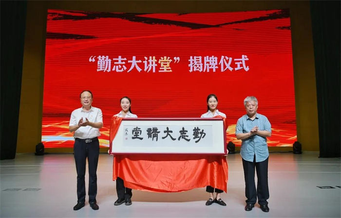 近年来,历城区教育和体育局一直高度重视传统文化的教育培养工作,为此,历城区教育和体育局联合山东大学特别创办了“勤志大讲堂”,以历城二中为基地,旨在汲取中华优秀传统文化智慧,全面加强干部队伍建设,提升学生精神素养,为促进历城教育高质量发展,打造全国教育高地、文化高地、人才高地而努力。仪式上,杨朝明和李新生共同为“勤志大讲堂”揭牌。